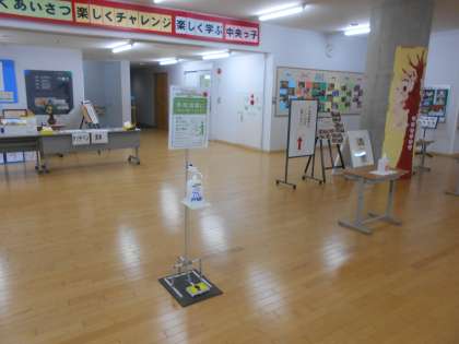 写真のように感染症対策(学年毎の動線、来校者用紙提出等)がありますが、よろしくお願いいたします。タッチペンの展示は各階段毎にありますので、ご利用ください。短い時間ですが、運動会や学習参観とは違う表情を観ていただき、お子さんにとっても保護者の方々にとっても実りある時間となることを願います。