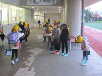先月から毎朝行っていた、町別児童会ごとのあいさつ運動。12/6(月)が最終日でした。雨が降り寒い朝でしたが、担当の町内の児童がさわやかなあいさつを響かせていました。