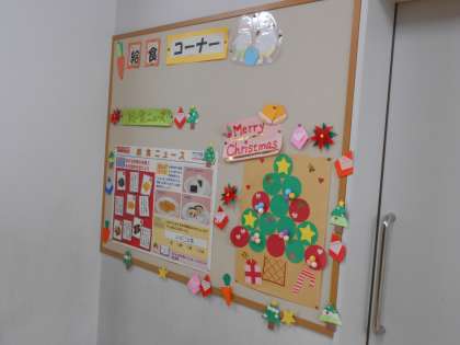 冷たい雨が雪に変わるという予報の17日(金)です。子供たちは雪が大好きですが、見通しが悪くなったり滑りやすくなったりするなど、危険も増します。雪道での歩き方(月曜日の登校時も)や遊び方等、学校でも指導しますが、ご家庭でも話してあげてください(左は、給食コーナーのクリスマスの飾りです)