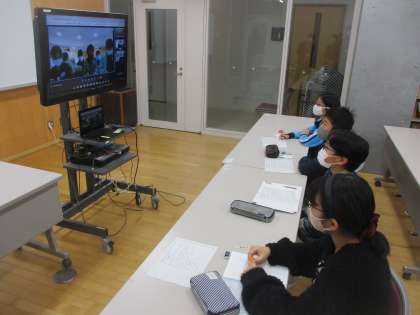 メディア機器を利用するにあたってのルールを、校区の中学校生徒会が作成しました。そのルールを、オンライン会議で周辺小学校の6年生と共有するという取組が行われました。