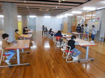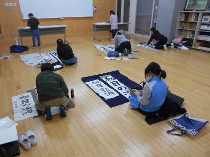 なかよしタイムには、卒業を祝う週間に関する代表委員会(中)、代表による県へ出す書き初め(右)が行われていました。