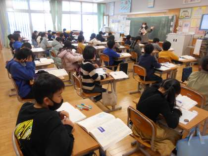国語では、どの学年も説明文を学習する時期なのでしょうか。4年生はウナギの成長の謎(左)、2年生では鬼ごっこ遊び(中)について学んでいました。