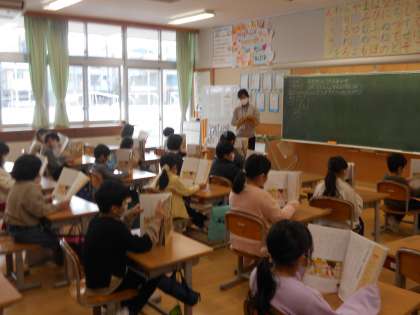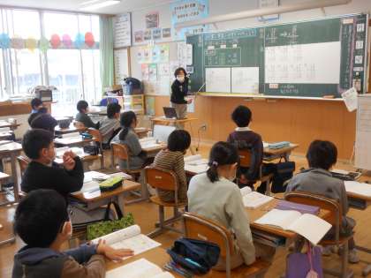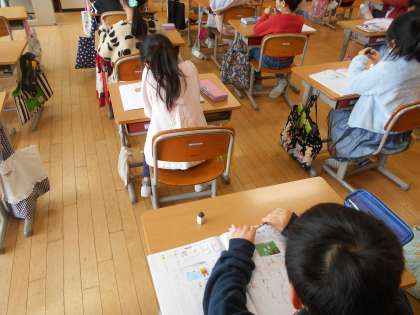3年生は算数の筆算の仕方を(左)、2年生は国語で「北」という難しい漢字を(中)、1年生は道徳で相手の気持ちについて(右)考えていました。