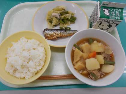 本日の献立は、いわしの土佐煮、野菜ソテー、豚肉とじゃがいものうま煮、です。