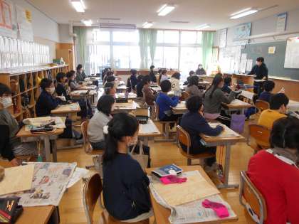 3年生は、総合のまとめ発表の準備中です。端末とにらめっこする子、ランチルームで大きな声で練習する子・・・。1年間のまとめの時期です。