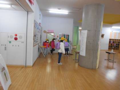 中は、以前紹介した玄関近くの給食室への「のぞき窓」です。栄養職員と調理員で飾りました。早速様子をのぞく子も。