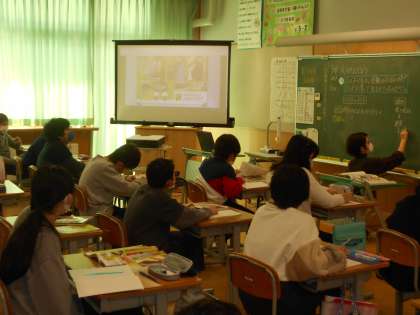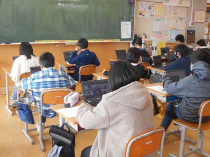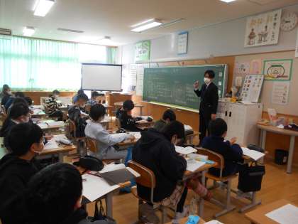 5年生も理科と社会科の学習を一生懸命に取り組んでいました(中、右)。少しずつ卒業をお祝いする期間も近付き、最高学年の階段を登ります。