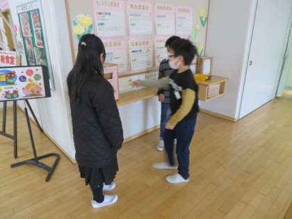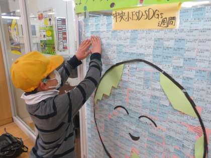 ESD-SDGs週間2日目、4年生の担当が朝からポスト横に立ち、「名前を書きましたか?」「入れてくれてありがとう」と声をかけています。