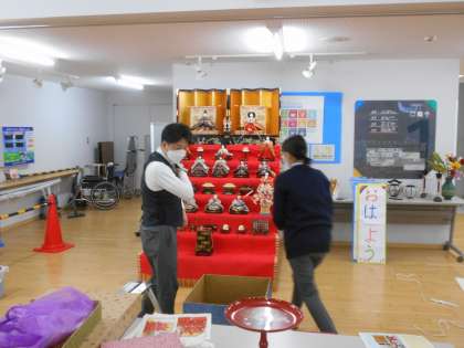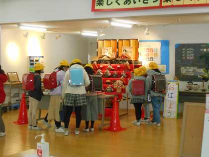 保護者の方の力を借りて、数年ぶり?に学校でお雛様を飾りました(左)。