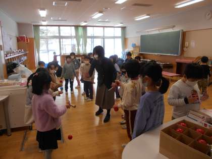 4年生のエコレンジャーカードを入れにくる子、「ありがとうの木」カードを貼りにくる子、縄跳びや昔遊びに興じる子等、思い思いに過ごしていました。
