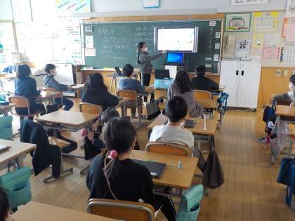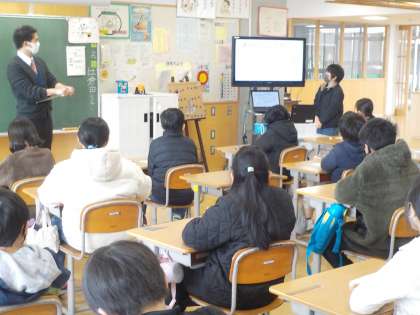 総合的な学習の時間に取り組んできたチャレンジ10で自分の行ってきたこと、分かったこととつなげての環境問題への取組について発表しました。二酸化炭素が増え続けると地球はどうなっていくのか、電気をこまめに消すことやエコバックを用いることでどのような効果があるのかなど、実際に取り組んだことを提示し、友達にもお願いする姿が見られました。