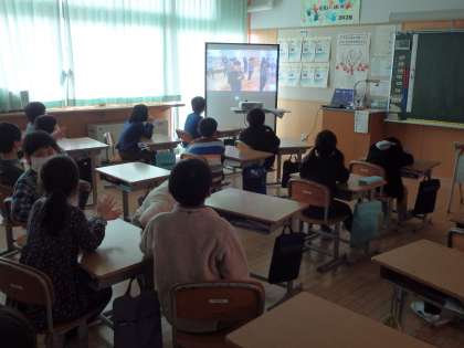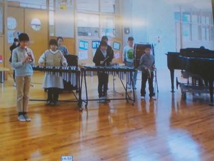 3年生は「パフ」を自分たちで演奏しながら6年生へ感謝のメッセージを伝えました。ピアノや大太鼓、鉄琴やリコーダーなど、みんなの音色がそろうように練習を重ねて演奏することができました。