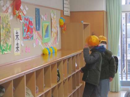 7日(月)の6年生下校後に、5年生と教職員が6年生教室エリアの飾り付けをしました。
