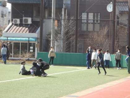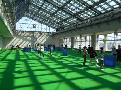 グラウンドで鬼ごっこする子たち、4階プール広場でソフトバレーや卓球を楽しむ子たち、廊下や多目的教室で長縄をする子たちがいました。