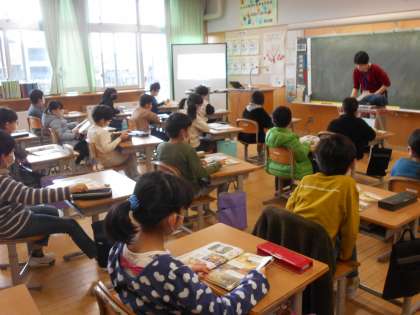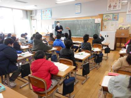 3年生の外国語(左)、4年生の国語(中)の様子です。どちらも学習のラストスパートのようでした。