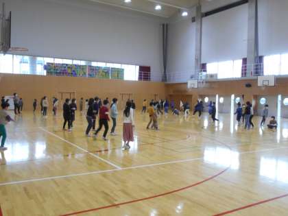 まずはグラウンドで遊ぶ1年生と体育館で遊ぶ「4年生」。