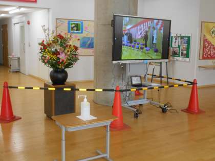 卒業式同様、昨日の入学式の画像を玄関で見られるようにしました(右)。