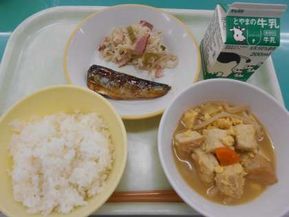 本日の献立は、いわしの梅煮、はりはりソテー、厚揚げの錦とじ、です。