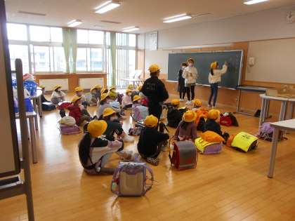 その後、町内毎に集団下校しました。教員が付添い、危険場所の点検等を行いました。