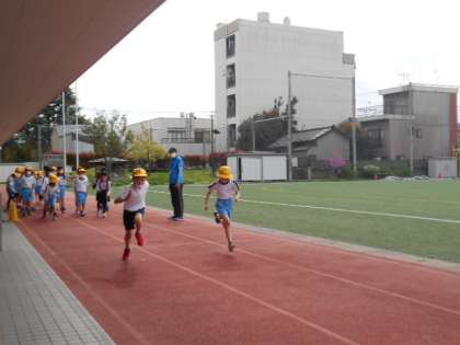 スタートダッシュの姿勢に気を付けて、走っています。思い切り体を動かしていました。