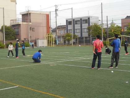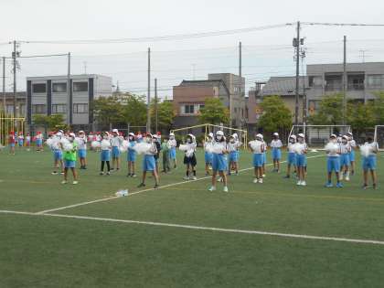 昨日の放課後に人工芝にラインテープを貼りました。練習すればするほど外れてくるのが「玉に瑕」です(中)。