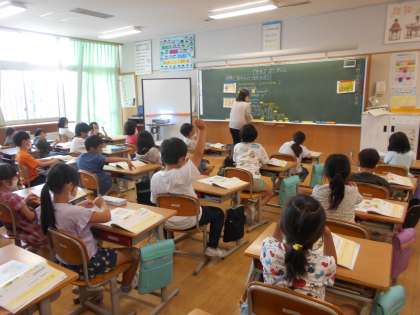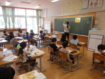 1年生は国語の読み取り(中)、2年生は道徳で(右)、頑張っていました。