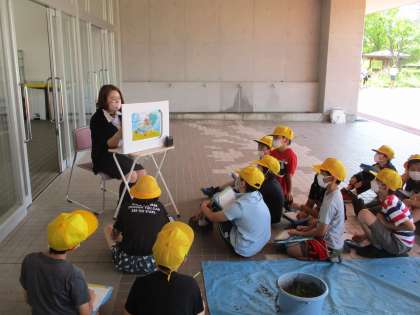 総合的な学習の時間にJAなのはなの方をお招きして、自分たちで米を育てるための田植えを行いました。子供たちは、JAなのはなの方が用意してくださった米作りについての紙芝居を真剣に聴いたり、積極的に質問したりしていました。