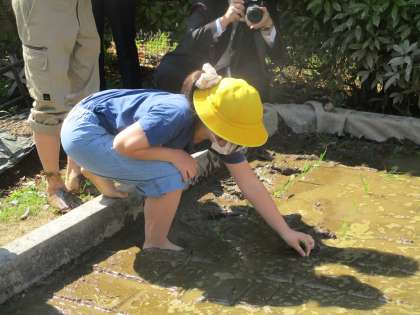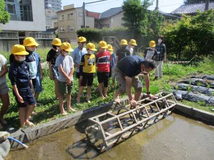 「セントラル水田」を使って田植えを行いました。子供たちは、JAなのはなの方の説明を聴き、真剣に田植えをしていました。初めての田植えを楽しみながら、笑顔で取り組む姿も見られました。