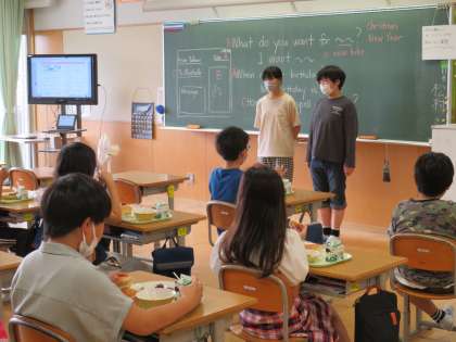 6年生の代表が、5年生のみんなに「5年生のみなさんのおかげで安心して宿泊学習を楽しむことができました。ありがとうございました。」とお礼を言いに行きました。