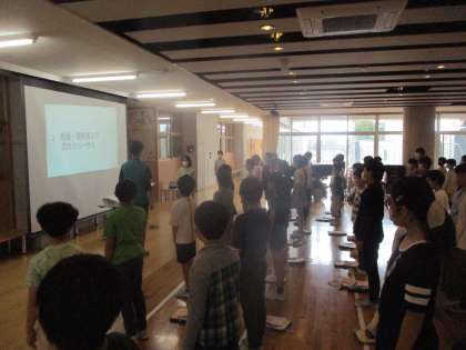 今日は式のリハーサルや、今までの係ごとの打ち合わせで決まったことの全体への報告、先生からの補足の説明を行いました。