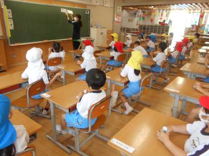 1年生が算数で「いくつといくつ」で足し算の学習が始まっています(右)。