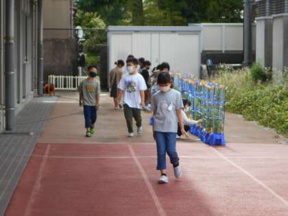 学校は、朝から大忙しです。今日も2年生が野菜に水やりを行っていました(中)。もう収穫できた子もいて、かなり大きくなっています。