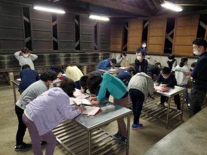 1日目の終わりは、班長会議です。班長は、各部屋に戻って伝達しました。