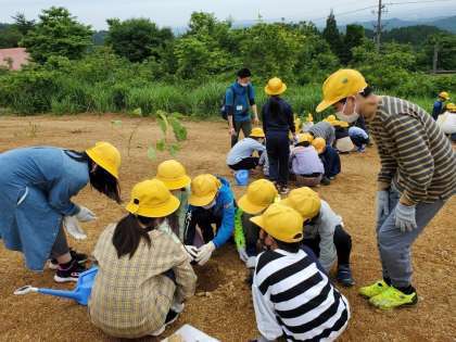 山田ふれあい広場まで歩いて移動し、植樹を行いました。