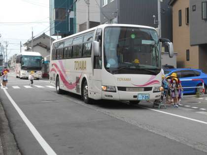 2年生が魚津水族館・ミラージュランドへ行った17日(金)です。「大きなバスだ」「あの遊具に乗ろう」等、楽しい会話が聞こえてきました(左、中)。