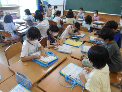 2年生は金曜日の町探検の計画を立てていました(中)。