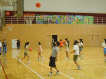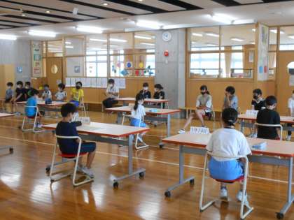 今日は、ランチルームで挨拶に関する代表委員会があったようです(左)。体育館では5年生、グラウンドでは1・3年生が遊んでいました(右)。