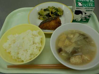 今日の献立は、ごはん、牛乳、揚げ魚のレモン味、とろろ昆布和え、なすのみそ汁 です。