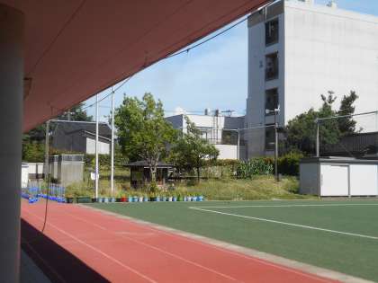 あまりの暑さに「できることをやってみよう」と、ミストと打ち水を始めました(中)。子供たちは大喜びですが。