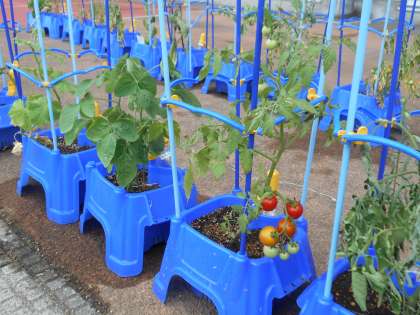 2年生の野菜が収穫を始めています(右)。「持って帰って家族で食べる」と嬉しそうに袋に入れる子供もいます。