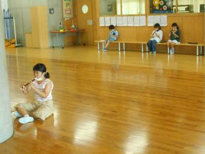 3年生が習ったばかりのリコーダーの練習です(中)。4年生のSDGsの学習も本格的です(右)。