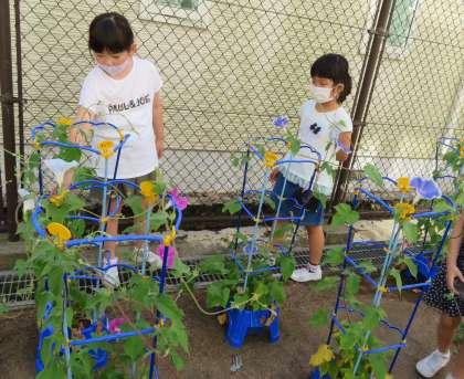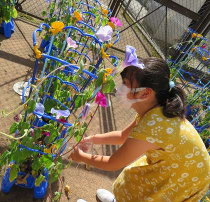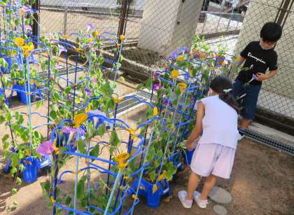 1年生 アサガオの花が咲きました 公開日 2022/07/01 更新日 2022/07/01 1年生 1年生が育てているアサガオの花が咲き始めました。 子供たちは、今日のアサガオはどんな様子か、何色の花が咲いているかを毎朝楽しみにして登校し、中庭へ様子を見に行っています。これから咲くアサガオも楽しみです。 そして、咲いた花の色や数をクロムブックに記録していくことにも、がんばって取り組んでいます。