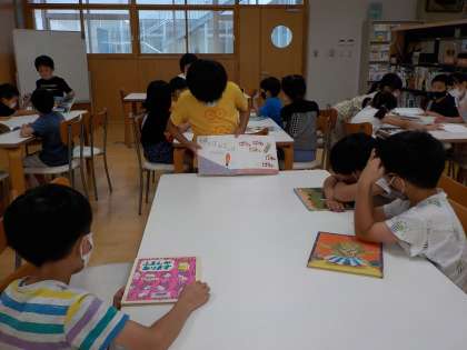 自分のお気に入りの本を、図書室でグループごとに紹介し合いました。本が大好きな子供たちです。友達が紹介する本を興味深く見ていました。夏休みにも、たくさんの本に出合ってほしいと思います。