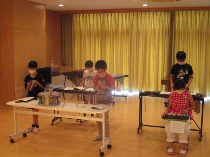 音楽科「リボンのおどり」の学習では、リコーダー、鍵盤ハーモニカ、木琴、鉄琴、小太鼓、タンブリンなどの楽器を使って、合奏を行っています。子供たちはチームに分かれて、「終わりに向かってだんだん盛り上がるように楽器の音の重なり方を工夫したい」「1回ごとに楽器の響きが変化するように重なり方を工夫したい」など、パートの重ね方を工夫して、音が重なり合う響きを楽しみながら演奏する姿が見られました。
