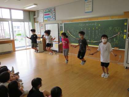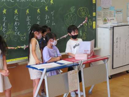 2年2組では、ゲーム、お笑い、なぞなぞ、ポスター、なわとび、演奏、飾り付け係が、今日のお楽しみ会に向けて準備をしてきました。今日は、その成果を発揮し、笑顔いっぱいのお楽しみ会になりました。友達と協力する姿、友達の発表を温かく楽しむ姿、様々な姿から1学期の成長を感じることができました。