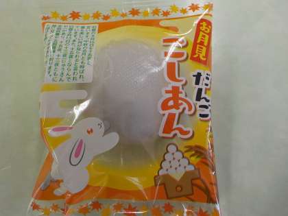 月見大福には、白いもちにかわいらしいうさぎの顔が描かれていました。