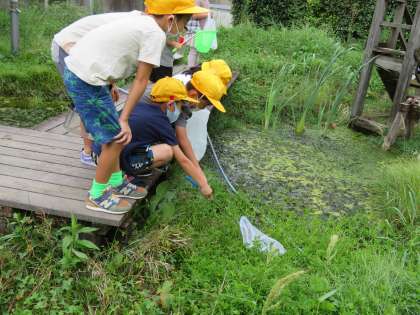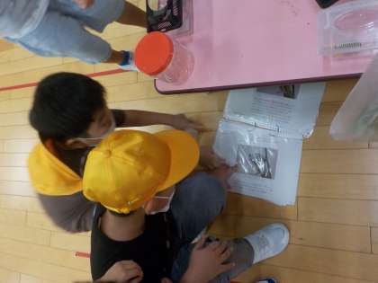 生活科の学習「いきものだいすき」で、虫みつけに出かけました。大切に育てる虫を見付けようと、容器片手に、夢中で走り回っています。自分の虫に出会えた子供たちは、「毎日お世話しなきゃ!」と、はりきっています。