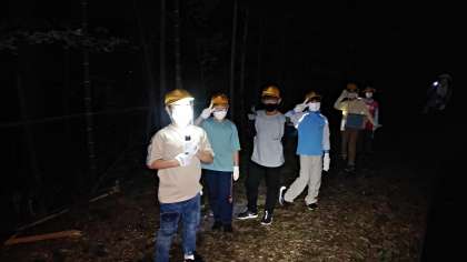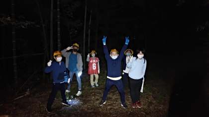 月光ハイクの様子です。竹やぶコースを声を掛け合って歩きました。