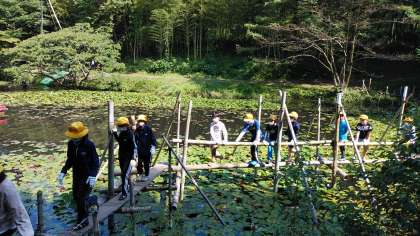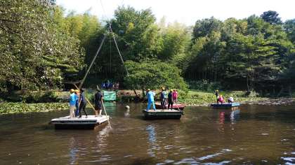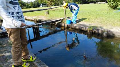 1日目、午後の活動です。池遊び、ザリガニつりを楽しみました。