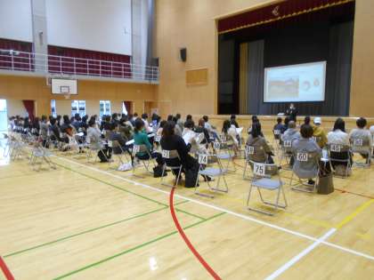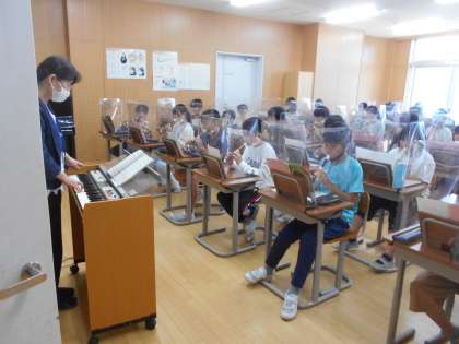 5年生が頑張ってくれた翌日の7日(金)です(準備=左、講話=中)。今日は不審者対応の避難訓練が予定されています。